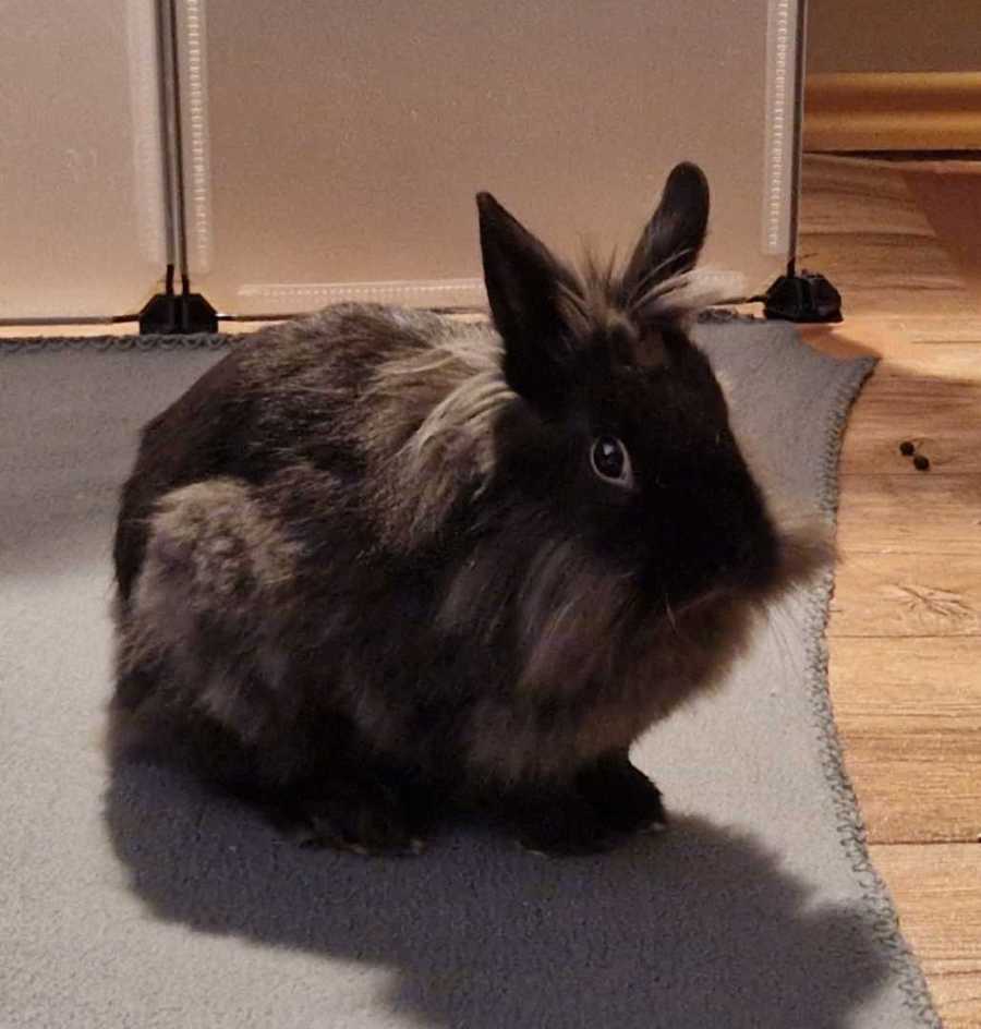 In der Innenhaltung ist er komplett stubenrein und nutzt nur die Katzen Klos. Er frisst ausschließlich Frischfutter, Wiese, Heu und Kräuter. Zur Belohnung freut er sich auch mal über
