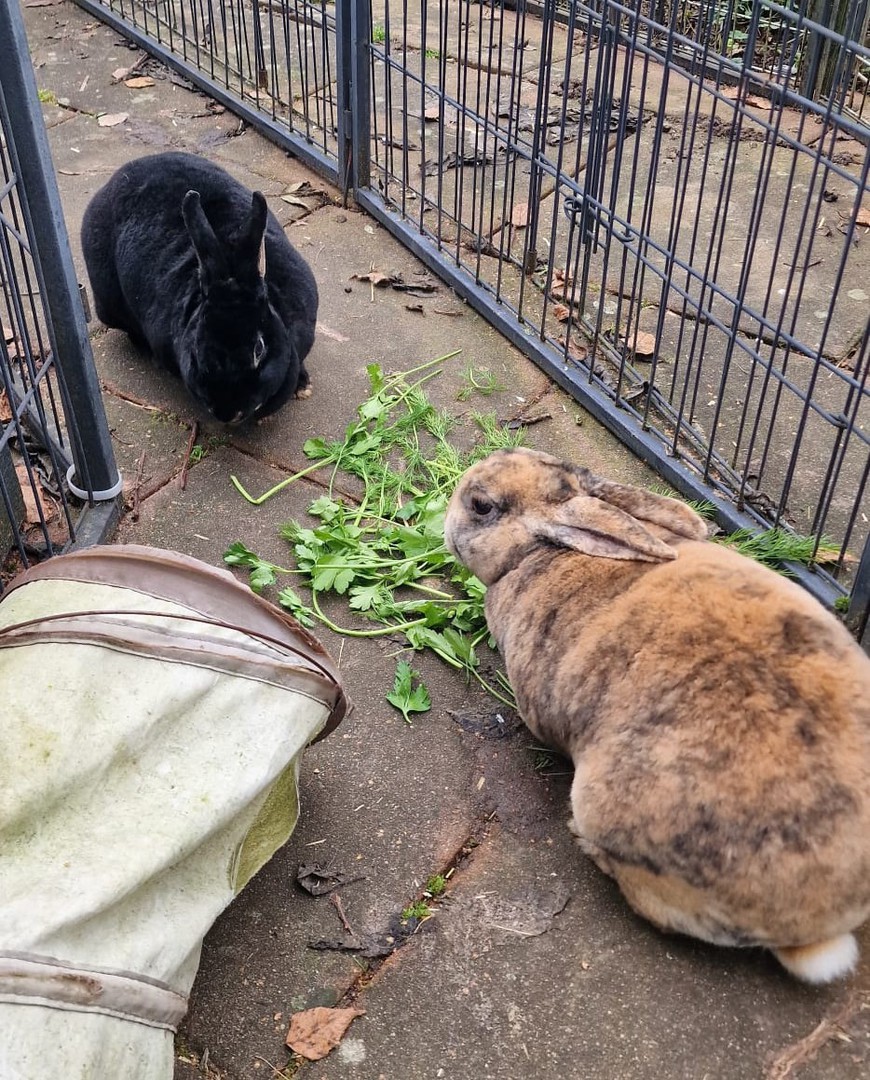 Käse und Frieda sind sehr zutrauliche Kaninchen. Sie sind sehr neugierig und verspielt. Zusammen suchen sie ein neues Zuhause.